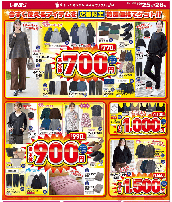 しまむら チラシ 2025年10月25日(土)~10月28日(火)