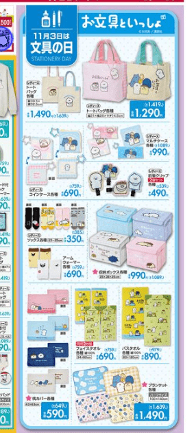 しまむら『お文具といっしょ』コラボのブランケット、クッション、寝具、収納ボックス、ソックス、タオル、トートバッグ、ヘアクリップ、寝具などが2025/11/1より新発売!