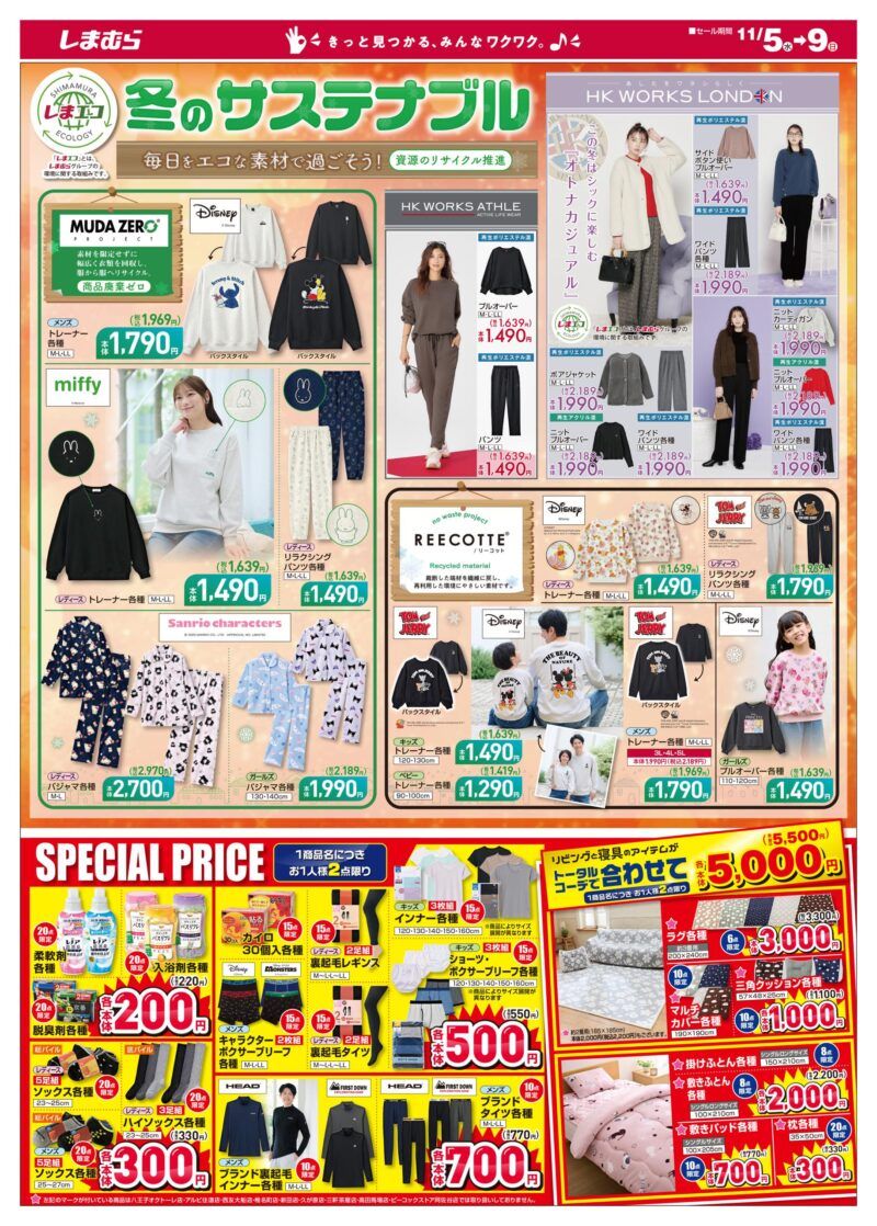 しまむら チラシ 2025年11月5日(水)~11月9日(日)
