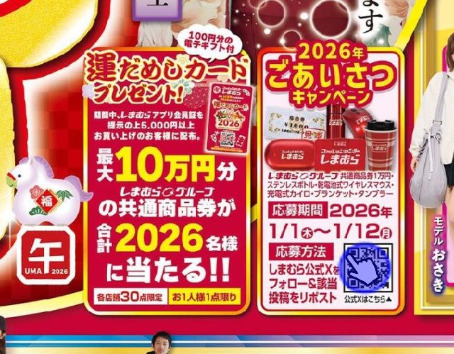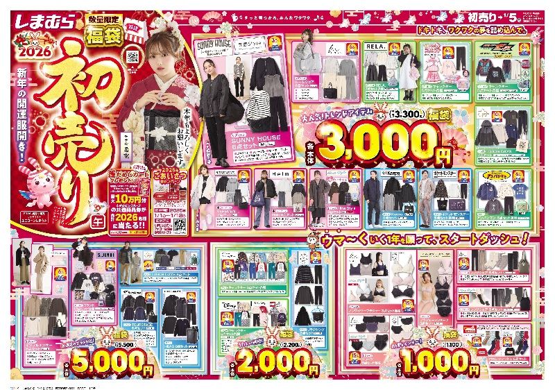 しまむら チラシ 2026年1月1日(木・元日)の初売り~1月5日(月)
