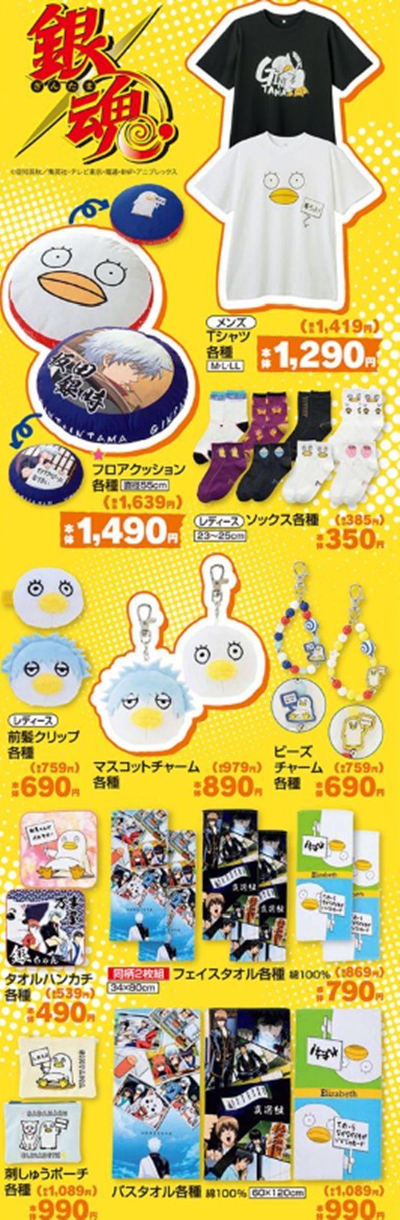 『銀魂』コラボから、ソックス、クッション、Tシャツ、タオル、シュシュ缶バッジ、キーホルダーなどがラインナップ!