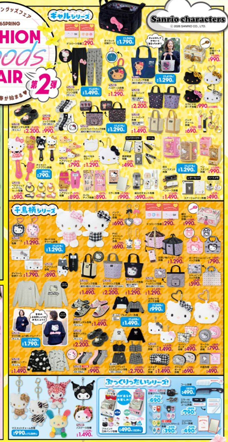 しまむら『サンリオ』コラボ!ぷっくりったいシリーズ、ギャルキティ、ハローキティの千鳥柄のグッズなどが2026/1/28より新発売!