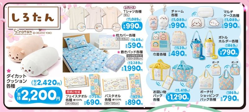 しまむら『しろたん』コラボ!半袖Tシャツ、タオル、クッション、敷きパッド、枕カバーなどが2026/4/1より新発売!再販売は?