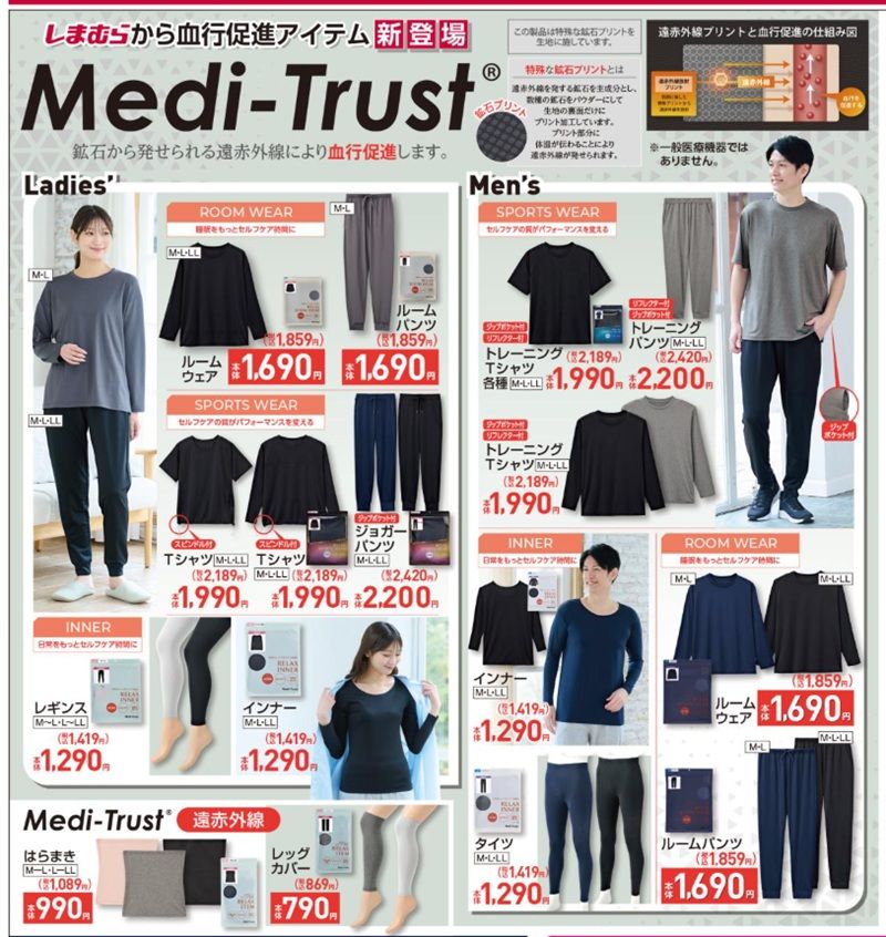『Medi-Trust』から遠赤外線効果による「血行促進」のリラックススポーツウエアが登場!着用しながら簡単ケア!冷え知らずの毎日へ!