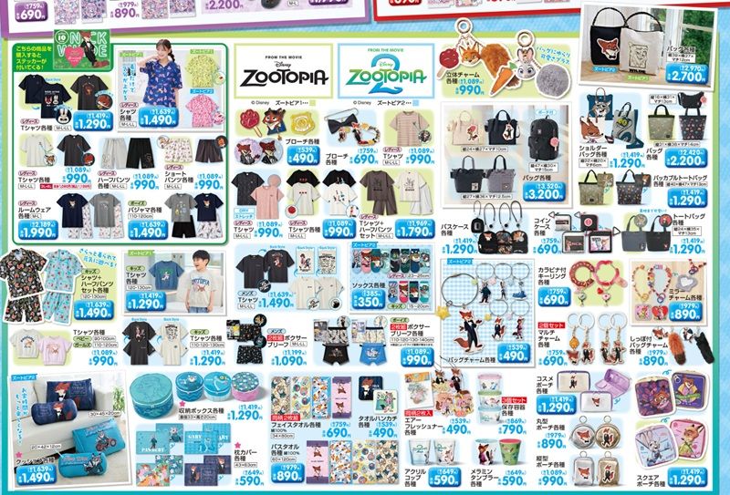 しまむら『ズートピア』『ZOOTOPIA2』コラボを販売します!夏アパレル、バッグ、ポーチ、チャーム、タオル、インテリアグッズなどがラインナップ!