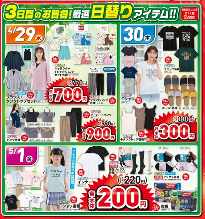 しまむら チラシ 2026年4月29日(水・祝)~5月3日(日)