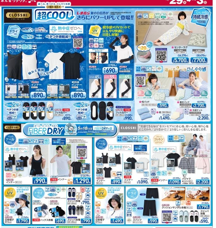 機能付きのインナーや、寝具、インテリアなども販売します。夏の準備にもオススメです!