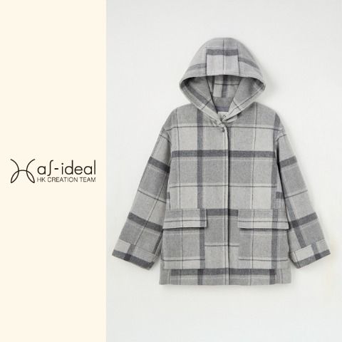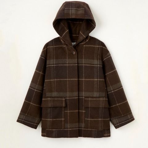 上品なチェック柄とリラックス感のあるフードデザインがバランス◎