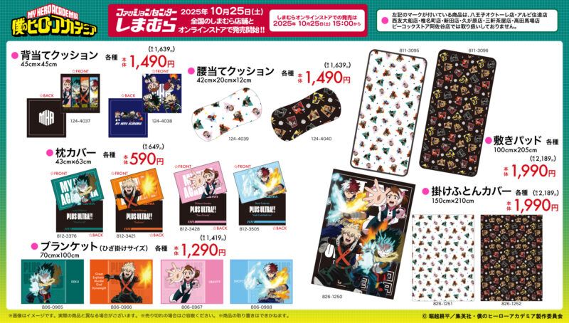 しまむら『ヒロアカ(僕のヒーローアカデミア)』コラボ!冬グッズ、インテリア、寝具などが2025年10月25日(土)より新発売!