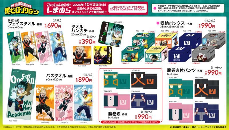 ≪商品ラインナップ≫しまむら『ヒロアカ』コラボ 2025年10月25日(土)発売