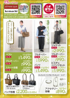 しまむら『Hina(ひな)・komachi(こまち)・yuki(ゆうき)』コラボの大きいサイズのアイテムが2025年4月5日(土)より発売します!全64アイテムの大型企画になっています。
