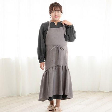 ゆったりサイズが嬉しい、マーメイドシルエットの大人可愛いエプロンです。