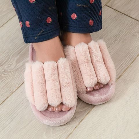 ふわふわ生地が気持ち良い、カヌレのようなデザインのゆったりスリッパです。