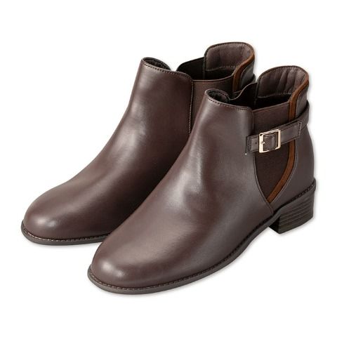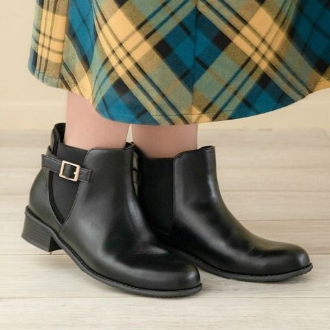 インフルエンサー、Hinaさんコラボ商品が登場!サイドベルトがアクセントになったブーツのご紹介です。履き口が広めに設計されており、脱ぎ履きがしやすいのが魅力。ゆとりのある設計なので、甲高・幅広の方にもゆったりと履いていただける仕様です。太めで安定感のあるヒールはほどよい高さで歩きやすく、長時間の着用でも疲れにくい一足です。