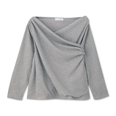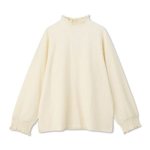 襟と袖のシャーリングデザインがコーディネートのアクセントに♪