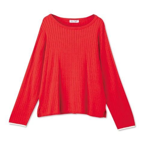 ピタッとしないリブの編地で体に沿わずすっきり、縦ラインを強調してくれます◎