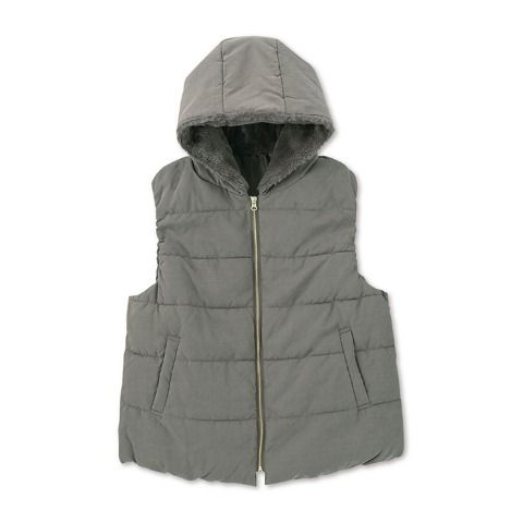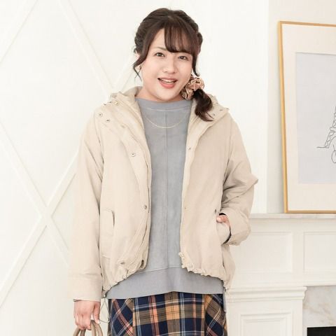 暖かいのに着膨れしない程よい厚みのある中綿を使用。ゴールドファスナーで縦ラインを強調。フード内側のふわふわファーがコーデのポイントです。フード口にはストッパー付きでフードの大きさを調整出来て便利です。