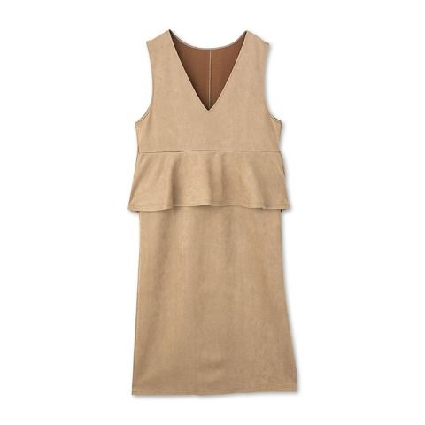ペプラム使いで大人かわいい。シンプルながらも立体感のあるシルエットでオンにもオフにも活躍するジャンパースカートです。