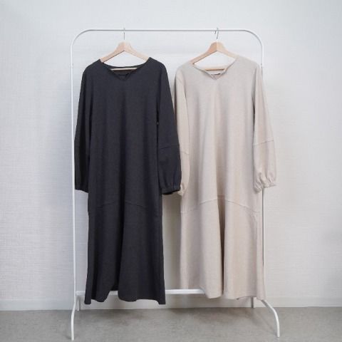 ふんわりボリューム袖と裾のフレアー切替が大人かわいい♪1枚で決まる楽ちんワンピースです。