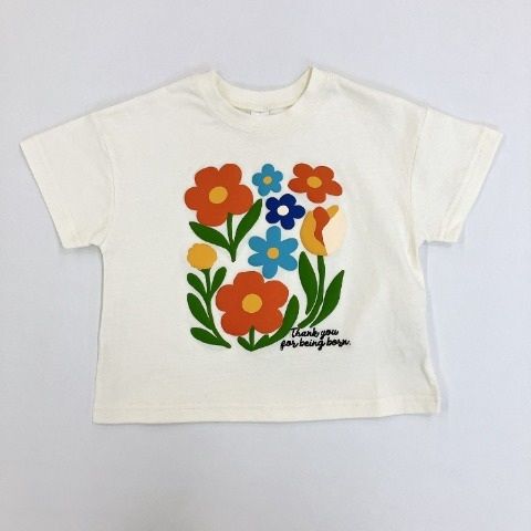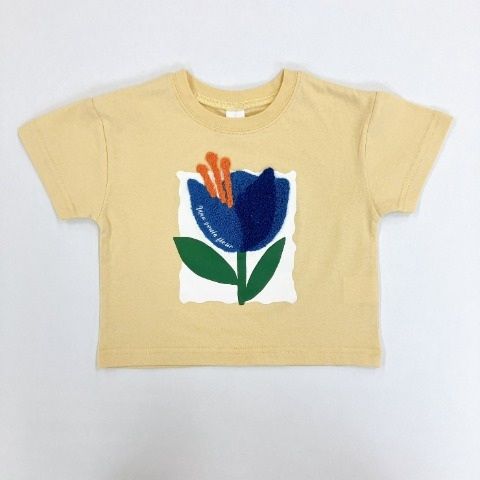 お花モチーフが発砲プリントと刺しゅうで凹凸感がある半袖Tシャツになります。