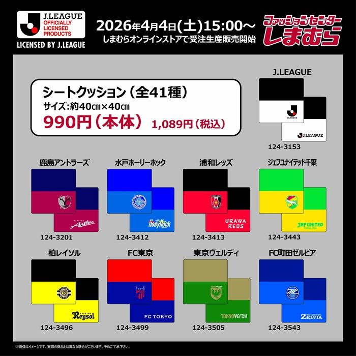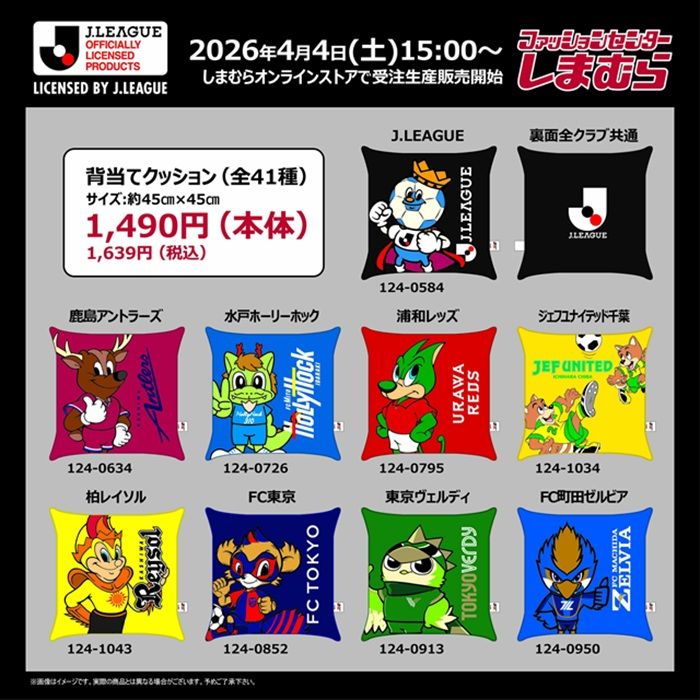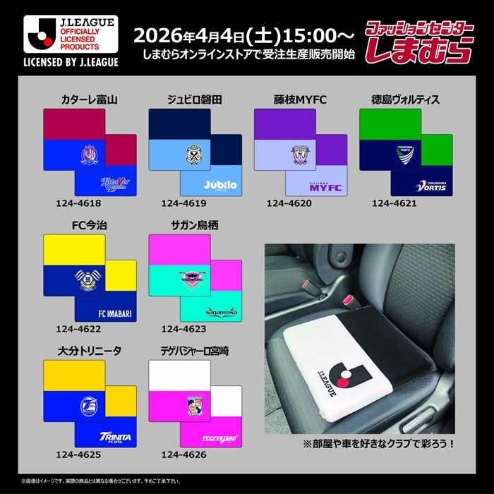 - しまむら『Jリーグ』コラボ!背当てクッション、シートクッション、枕カバー、サンダル、収納ボックス、インナー、ロングタイツ、ネクタイが2026年4月4日(土)より新発売!