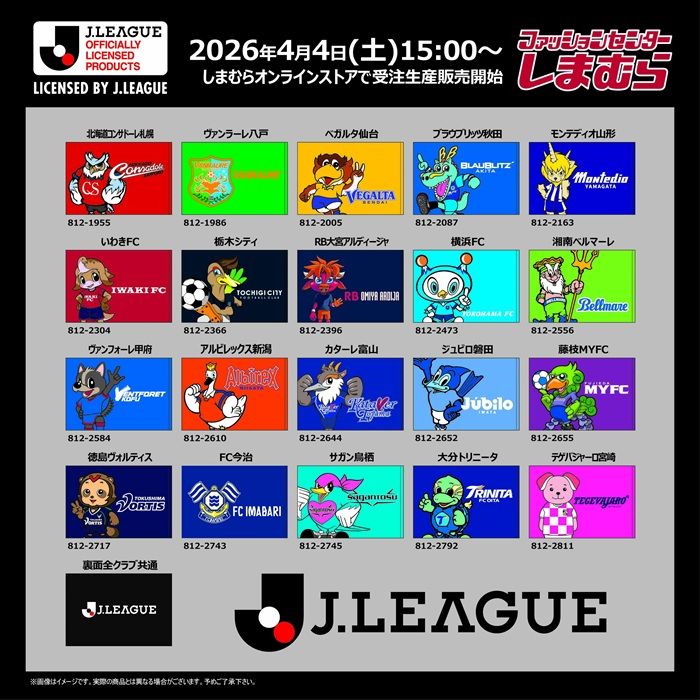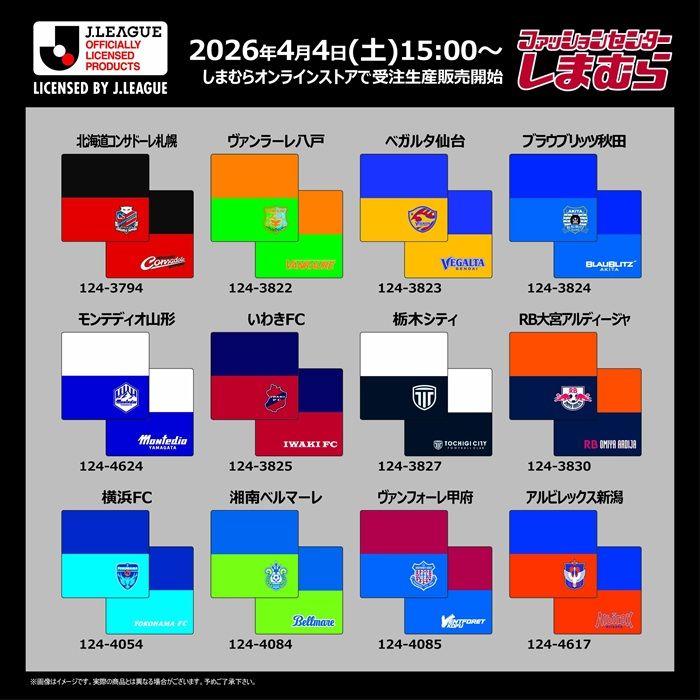 4/4(土)15時から、しまむらパーク(オンラインストア)でJリーグのグッズの受注生産販売・予約販売がスタート!