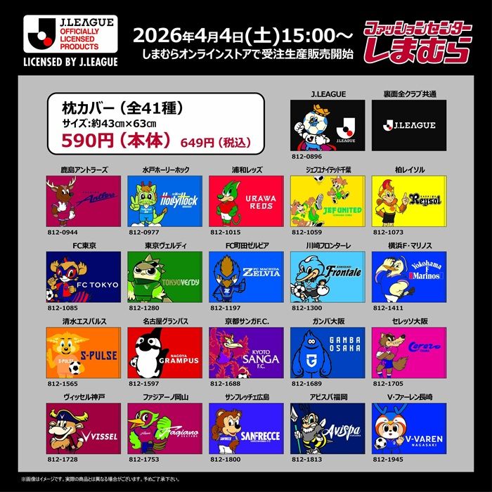 注目のJリーグ枕カバーがしまむら限定で登場!!