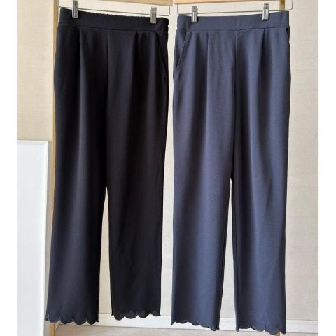 フロントは綺麗目見え、後ろはゴム仕様で楽ちんに着て頂けます。