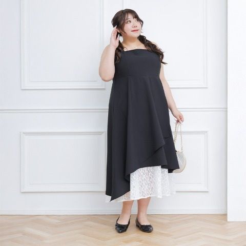 アシンメトリーな裾から見えるレースが可愛いキャミワンピース♪