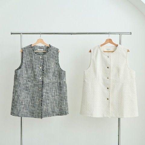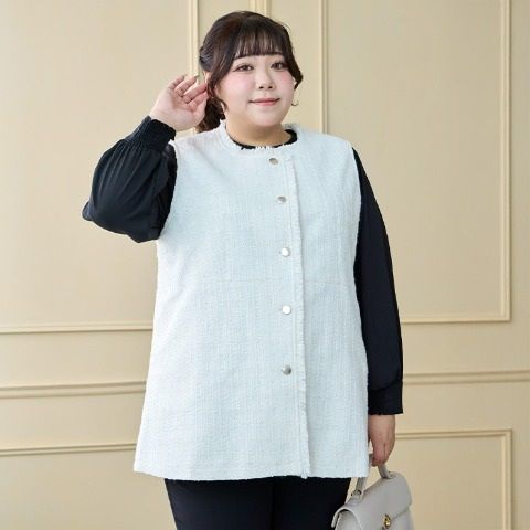 上品に見えるツィード素材を使用したジレです。