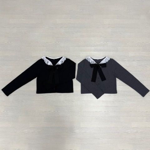 トレンドのコンパクトカーデを取り外しのレース襟付きで様々なコーデが楽しめる1枚です。