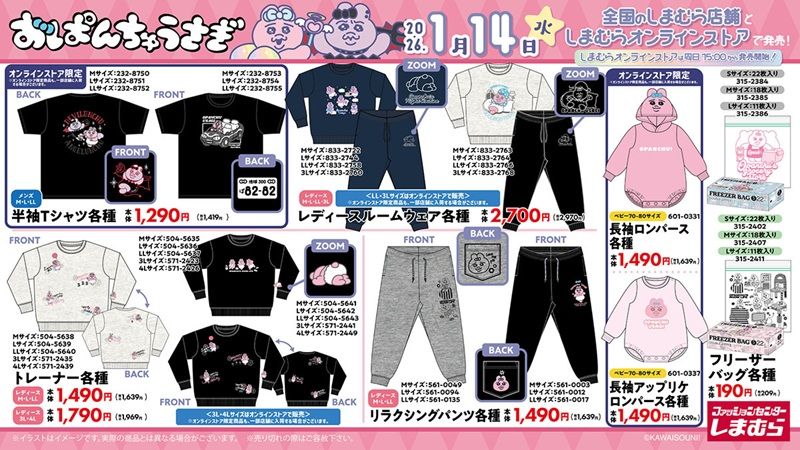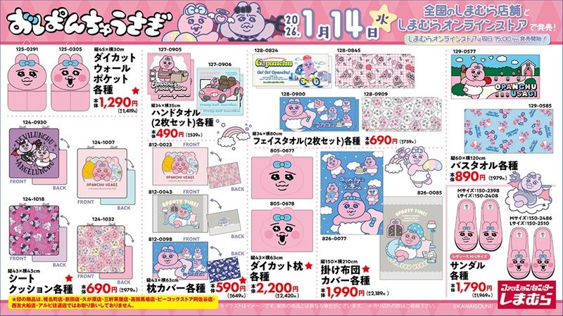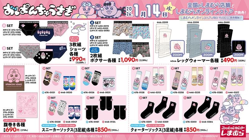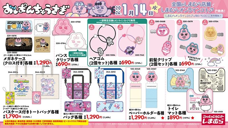 1月14日(水)より発売! #おぱんちゅうさぎ のグッズが全国のしまむらに登場!