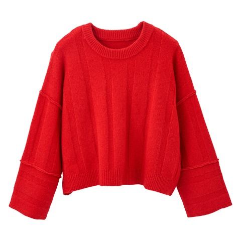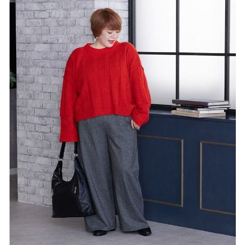 ワイドリブな編地と広めの袖シルエットがルーズな雰囲気でこなれ感もアップ。