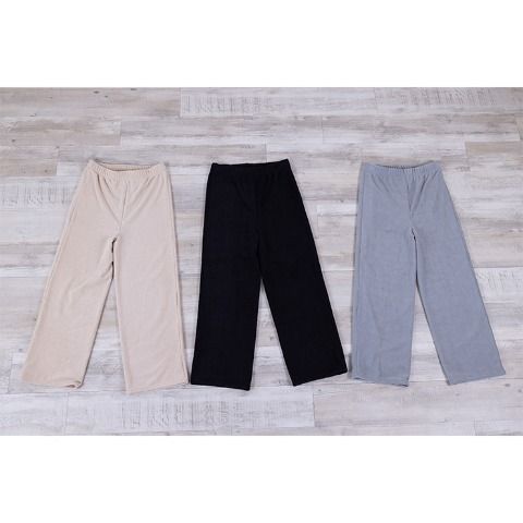温かみのある起毛素材のジャカード編みのワイドパンツです。