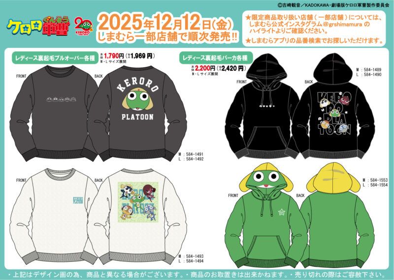 しまむら『ケロロ軍曹』コラボを2025年12月12日(金)~販売します。トレーナーとパーカがラインナップ!