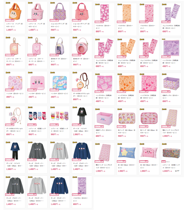 しまむら『星のカービィ』コラボのトレーナー、パジャマの秋冬アパレル、ぬいぐるみポーチ、ファーバッグ、エコバッグ、ハンカチ、タオル、ソックスなどの雑貨が新発売!
