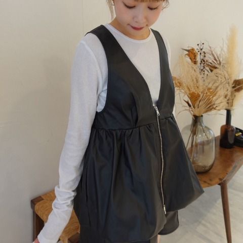 レディース フロントジップ合皮ベスト(miyu) 1,790円(税込 1,969円)