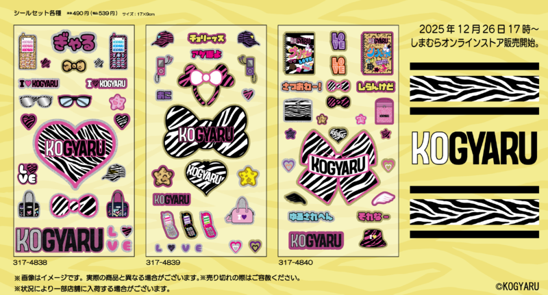 しまむら『KOGYARU(コギャル)』コラボを2025年12月26日(金)~販売します。シールセットがラインナップ!