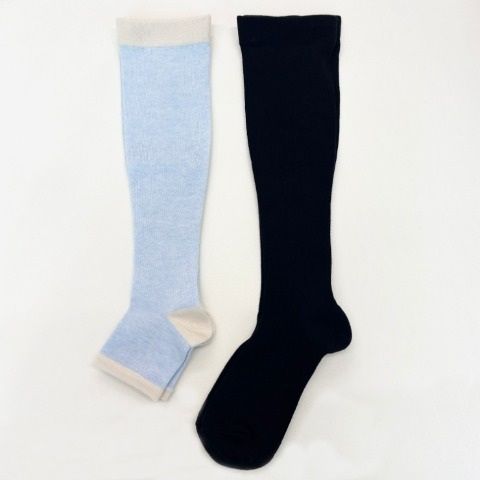 ON-timeにおすすめのハイソックスと、OFF-timeにおすすめのトゥレスハイソックスの2足組セットになっています◎