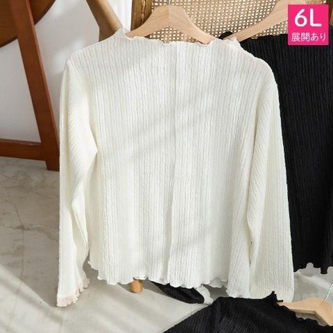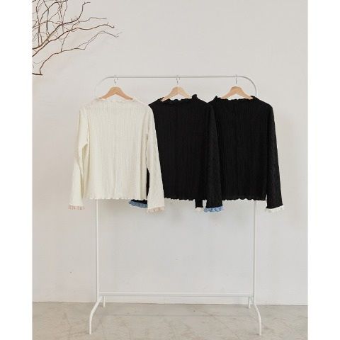 袖口には配色フリルが入っているので、一枚でも重ねて袖を出して着ても◎