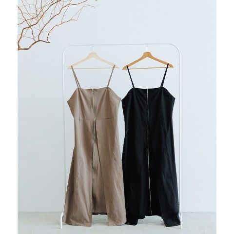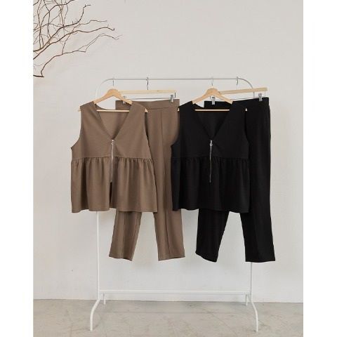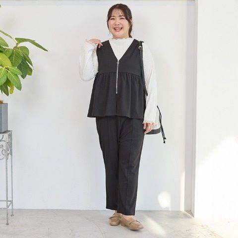 トップスはノースリーブのペプラムベストで、前身頃にジップが付いており開閉可能です。