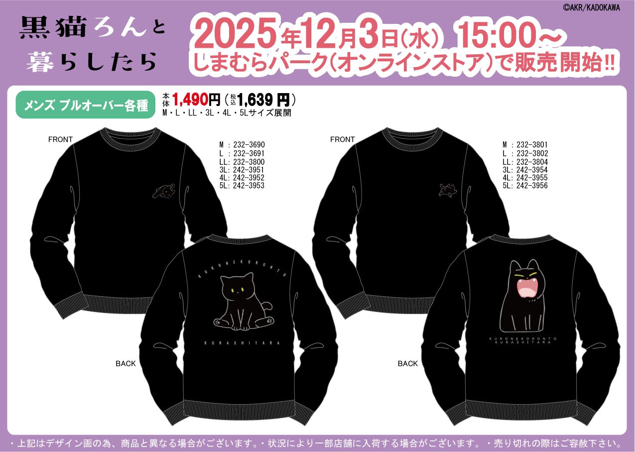しまむら『黒猫ろんと暮らしたら』コラボを2025年12月3日(水)~販売します。トレーナーがラインナップ!