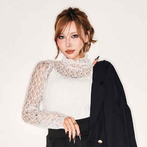 シアー感のある繊細なレース生地が魅力的な短丈メロートップス。