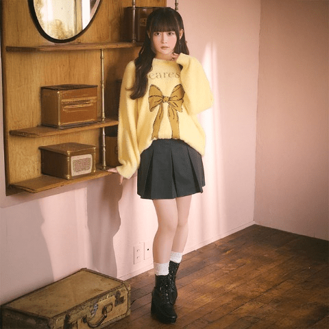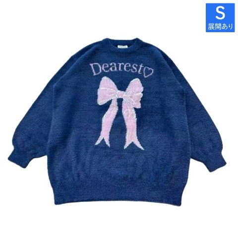 大きなリボンモチーフとロゴがキャッチーなふわもこニット♪