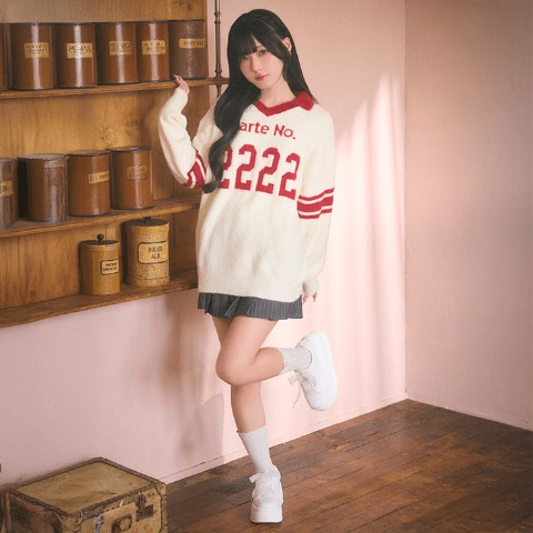 レディース ナンバリング配色ロゴシャギーニットプルオーバー(きゅるりんてしてみて) 2,200円(税込 2,420円)