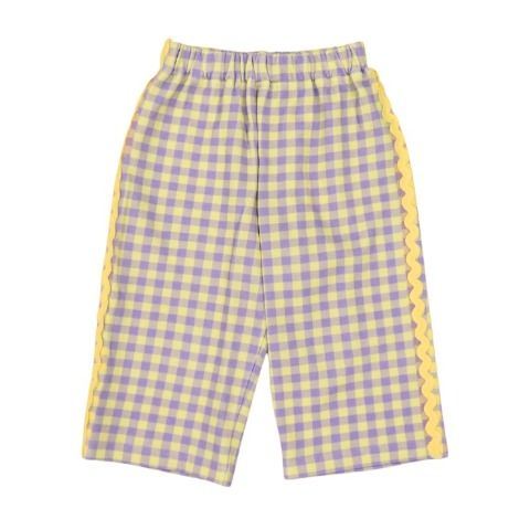 イエロー×パープルのギンガムチェック柄ワイドパンツ♪