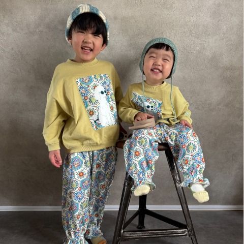 ポップで春らしい色合いのジェンダーレスなデザインなので、女の子も男の子も着られるデザインです!