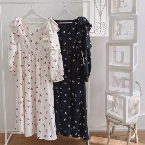 肩のリボンとフリルが目を惹く、1枚で主役級にしてくれるワンピースです!