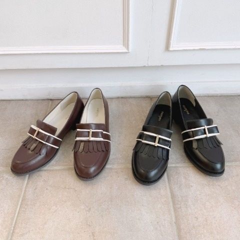 キルトデザインに、バイカラーリボンがポイントになったローファーです。