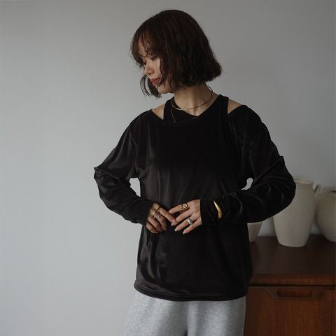 少し長めの袖丈をくしゅっとさせて着たり、袖口に付いているサムホールでスッキリ着たりと1枚でいろんな着こなしが楽しめるのもポイントです!